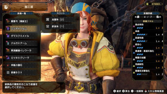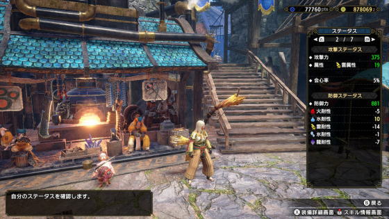LV7程度のMR防具セットで、「吹き飛ばし+追い打ち」での即死パターンが多いので、持っている鎧玉を全て使って防具を強化して、650から880まで上げても、結局その「吹き飛ばし+追い打ち」での即死が防げれない・・・。