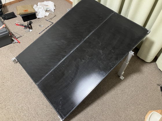 で、試しにニコイチパネルに足4本を付けたら・・・、真ん中が若干、くの字、に。