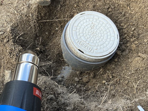 ソーラーパネルの架台土台として、土間コンDIYをやろうと、まずは浄化槽のコンクリ天面と排水枡の点検口2か所の高さを計ってみたら、2つの点検口が数㎝低い状態でした。