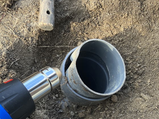 100サイズの汚水枡は、L型エルボが地表近くに埋まっていまして、100サイズの直管がエルボのソケット部分にハマっているだけでしたので、Youtubeの動画を参考に、ヒートガンで内側を温めて、柔らかくなったあたりでマイナスドライバーでコジッたらすんなり取れました。