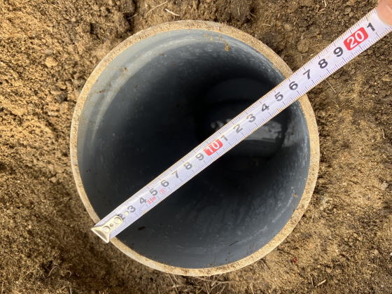 100サイズの方は、多分浄化槽のオーバーフロー用の配管のため、地表近くにソケットがありましたが、こちらの150サイズは道路の側溝に流れていくやつで、ソケット部分はかなり地下にあります。
