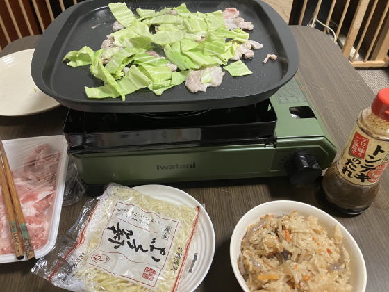 人工芝もそうですが、キャンプでも使える屋外用のカセットコンロと鉄板を買いました。