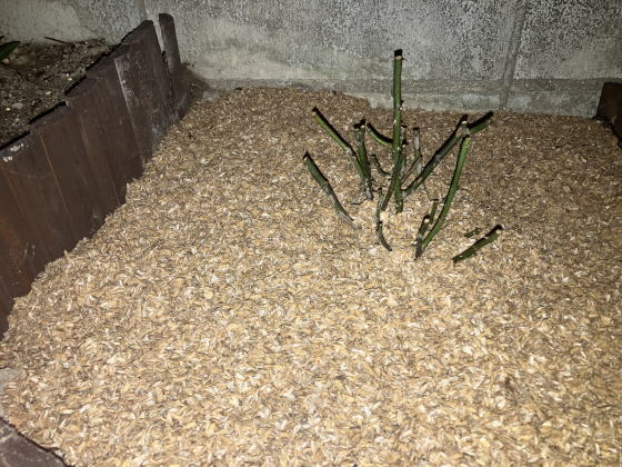 で、黒星病の対策のYoutube動画を見て、馬馬糞(もみがら入り)やら、殺菌剤やら、殺虫剤、メネデール?や、カツリキ剤を購入して、冒頭の写真のように剪定もして復活を待つことにしたのですが、・・・・・・
