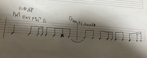 テンポ168だと、16分音符の所がどう頑張っても間に合いません。そして、F6コードの押さえ方を脳内変換→指に指示している間に、1小節流れています^^;