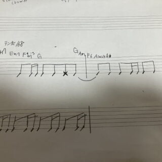 今日のストローク部分の練習初期と、Aメロ部分のほぼ初見弾き。Aメロ部分はまだ曲になっているか。