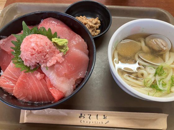 四日市のマグロレストラン。平日の午後1時30分過ぎでも、ほぼ満席。食券はすぐに買えたけど、中の調理者が少ないのか、いつもの休日の朝一なみ(食券を買うのに何10人も並んでいる)に待たされた。