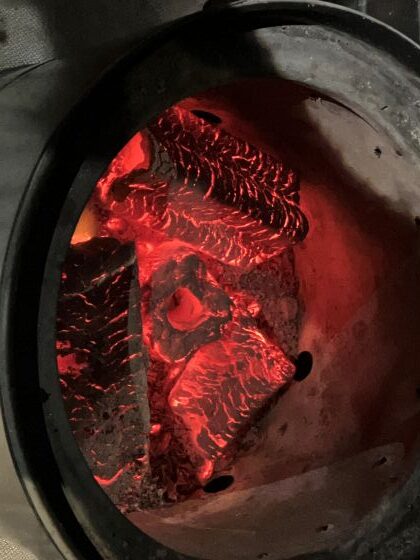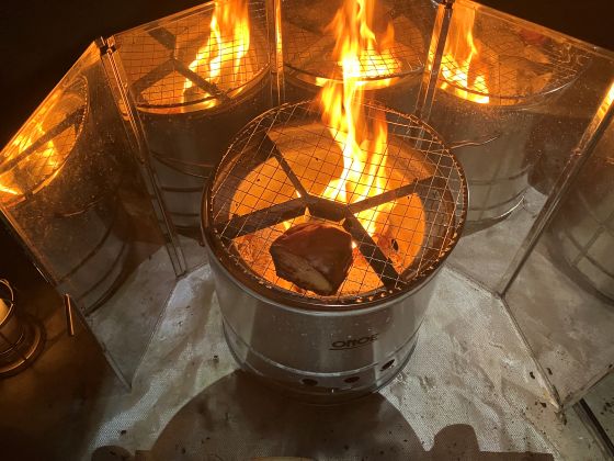 オガライトという薪の一種を買ってみましたが、なかなかいいですね~。火もしっかり上がるし、熾火がすごい長持ちするので、炭火焼きというか、この焚火台の本来の七輪としての役割が堪能できます。
