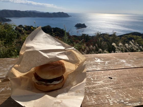高速道路での移動は早いけど、淡路島で下道の海沿い道路を走るとそれなりに混んでいて、先端で淡路島バーガーを食べるころには11時30分