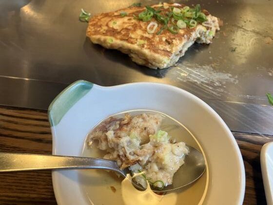 食べ掛けの画像ですが、岡山県のどろ焼き(喃風)。今回で3回目の来店かな。やっぱ粉物、ジャンクフード最高♪
