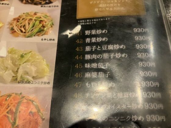 青菜炒めが930円なのに、冒頭の油淋鶏は960円か980円。