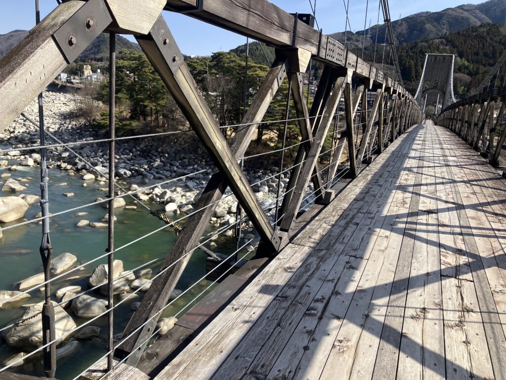 19号線を通るたびに気になっていた吊り橋。思ったよりは揺れなくてドッシリとした橋でしたが・・・、やっぱりスマホで写真を撮っていると、結構怖い。