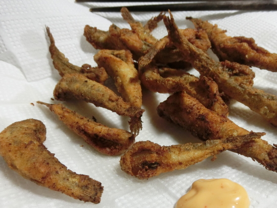 で、本日盆休み3日目の夜ですが、実家から戻ってきて、冷凍していたハゼを唐揚げにして、また食べました。