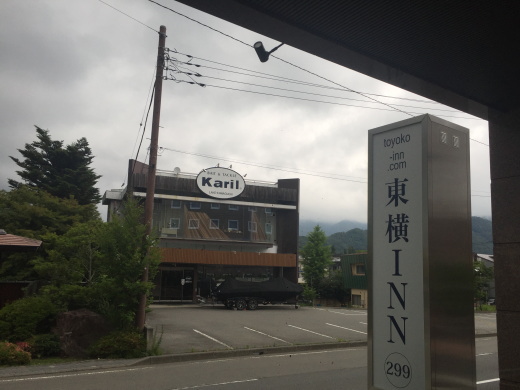 泊まったところは、河口湖のビジネスホテル。なんと目の前にブラックバス釣りをしている人には有名な、ルアーショップキャリルさんが建っていました。