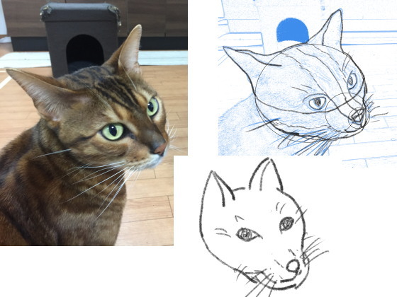 一人は、ラフから仕上げまで、今までにないぐらいのスピードでしたが、なんというかしっくりこない。(細かいところが似てない、ベンガルの背中側でなく、腹だけの模様の構図で、継続的に依頼するには頼りない感じ)