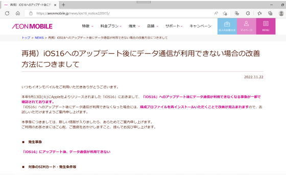 速攻で、契約しているイオンモバイルのHPで、関係するニュース、お知らせを見つけました。