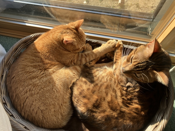 冬で寒いからかな~というのもありますが、暖かい窓辺で同じベッドに入っているのは、かなり珍しいです。
