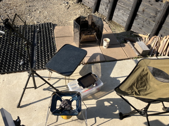 鶏肉を鉄板で焼くために、久々に庭キャンプの準備をしました。
