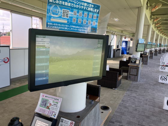 先日は昔ながらのカゴに50球もらう練習場でしたが、今日行ったところは、全打席に飛距離とかコース模擬練習ができるモニターがついている練習場です。