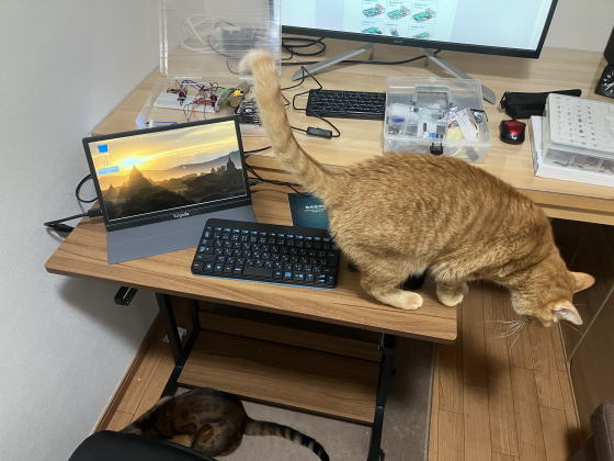 納戸を書斎部屋にしたのは、このラズパイを出したままでも部屋の扉を閉めれば猫たちが入ってこれない、というのが目的の一つではありましたが、書斎部屋に一人でいると猫がニャーニャー騒ぐは、扉は爪でガリガリするわで、結局部屋に入れることに^^;