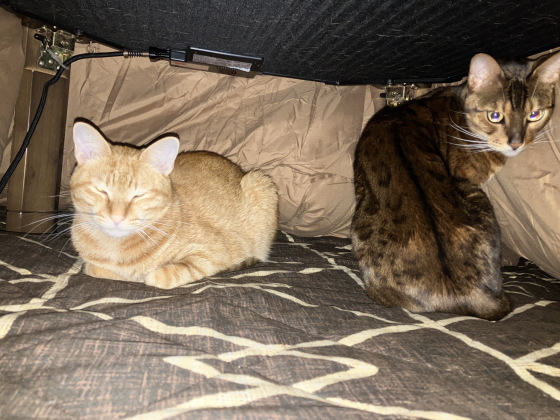 コタツを準備している時点でテトがハッスル。かけ布団をセットしたら、速攻で2匹ともコタツに潜る。