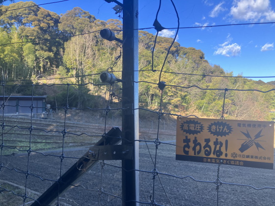 多分、こんな方から入園する人いないだろうなと思う入り口から入ったのですが、イノシシ、サル避けの電気柵がお迎え。
