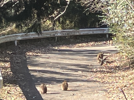 柿の木や、みかんの木が見当たらないのに、なんで果物を持っているのか不思議でしたが、どうも、ちゃんと人間を怖がるようで、変に威嚇されることもなく、公園に入れました。