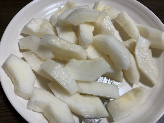 風呂上りに写真のお皿を完食してしまったので、多分甘さや触感としては、キナウリとして普通以上の出来栄えだったと思いますが。