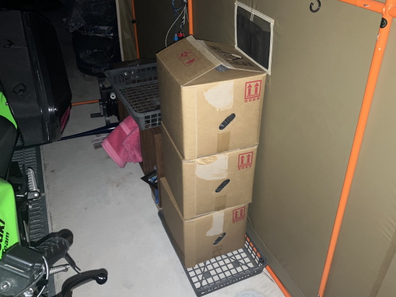 この段ボールがテント内でどれぐらい持つのか様子見ですが、ま~この容器なら毎月10個ぐらい発生するので、置けるだけ増やしますかね。
