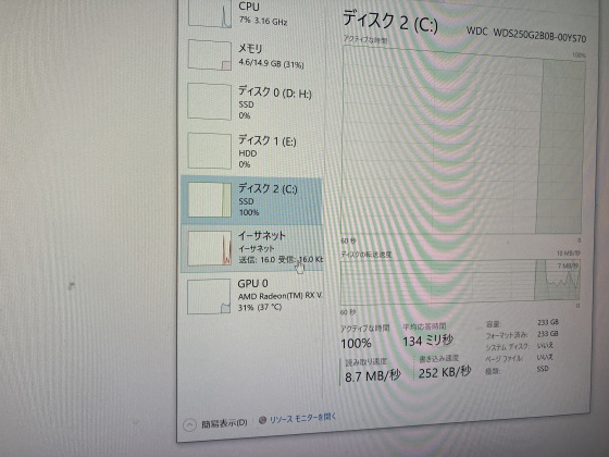 以前、なぜかディスクトップPCの動きが遅くなって、動画ソフトの立ち上がりに数十秒かかるようになったことがありまして、原因がM2スロットのSSDが100%ビジーになるという、なにかプログラム的な不具合というのが発覚。