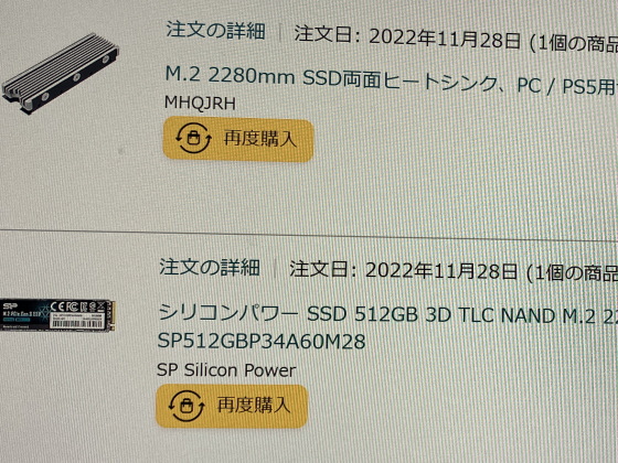 なので、以前この不具合が発生していた時に購入していた、新品のSSDに本日交換。